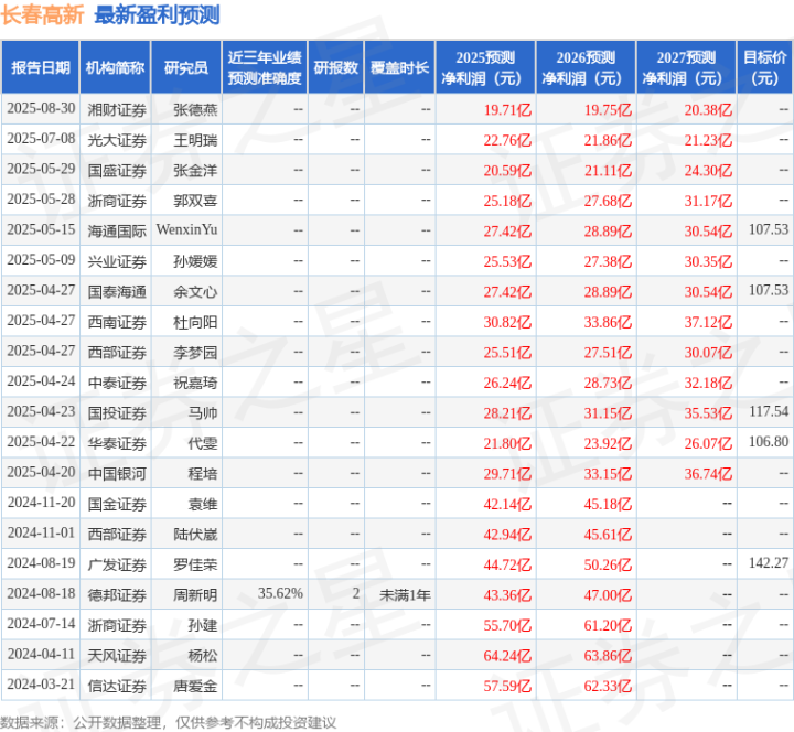 中国银河证券股份有限公司程培,宋丽莹近期对长春高新进行研究并发布了研究报告《长春高新2025半年报点评:新品获批上市,费用率提升致利润短期承压》,给予长春高新买入评级。
